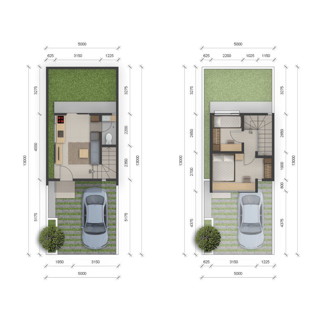 - KAMAR 2 Kamar Tidur dan 1 Kamar Mandi